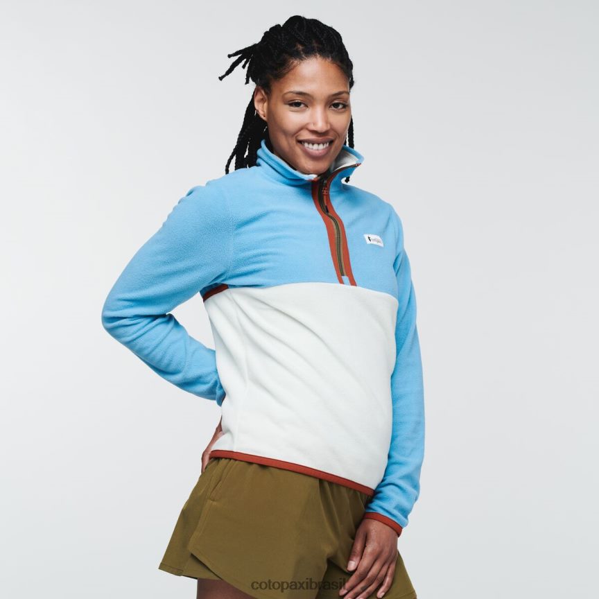 passe para o cotopaxi amado, a camada intermediária reciclada que você nunca mais vai querer tirar. este velo leve e com meio zíper combina perfeitamente com sua camiseta e jaqueta favoritas, mas também é incrível para usar sozinho.